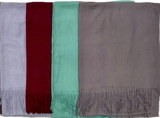 Ladies cotton scarf wrap with tassels. In plain colours black, navy blue, grey, deep red, pink, beige. Style as scarf or shoulder shawl wrap. Size 65cm x 170cm
